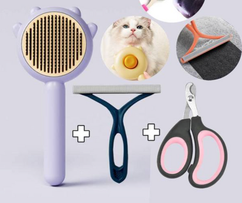Our all-in-one Cat Grooming Kit provides everything you need for your cat's grooming needs, including a brush, nail clippers, and a furniture cleaner, ensuring your feline companion looks and feels their best.