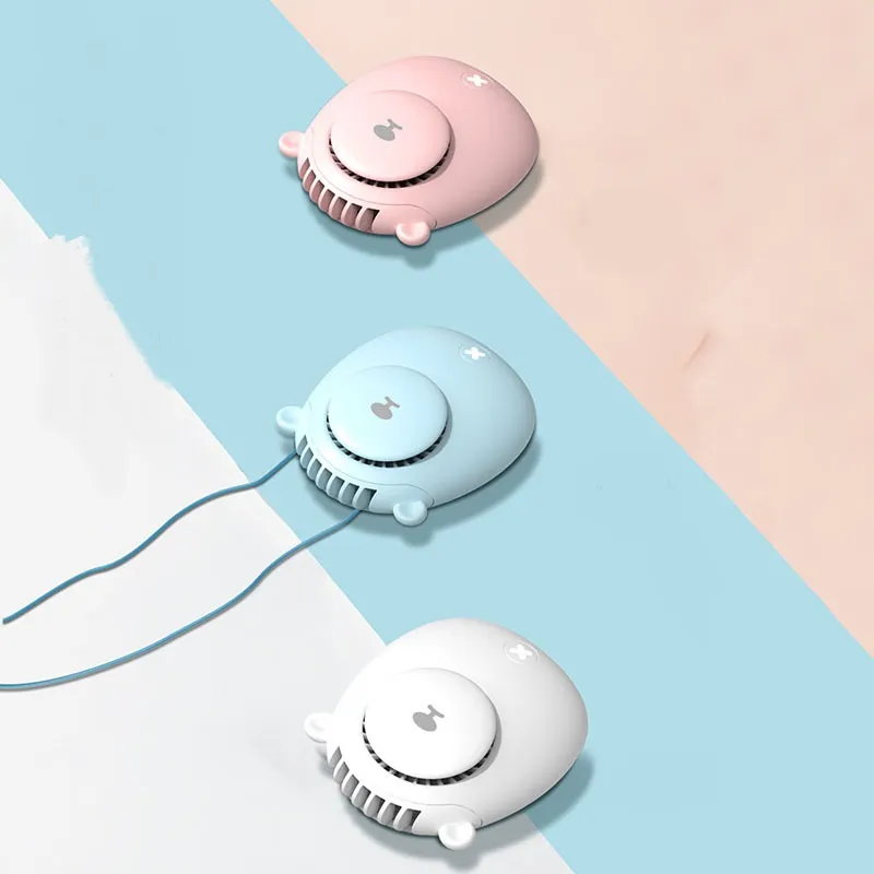 New Bear No Leaf Hanging Neck Fan – Portable, Cute, and Cool Off Anytime, Anywhere