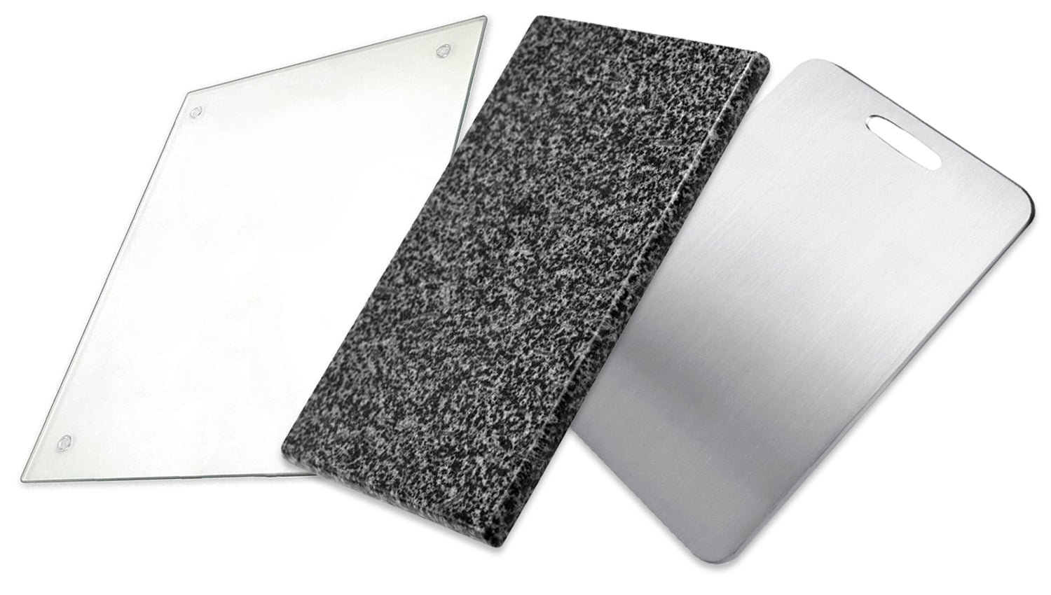 - Titanium: Although softer than stainless steel, titanium boards are more costly and may not offer the same durability and scratch resistance as our stainless steel boards.