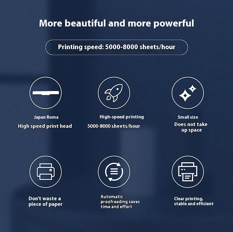 The single electronic surface design ensures compactness and ease of use. With a streamlined printing process, it is perfect for businesses that need efficient printing solutions in limited spaces. The printer’s design makes it easy to use in various settings, whether it's for retail, inventory management, or general office tasks.