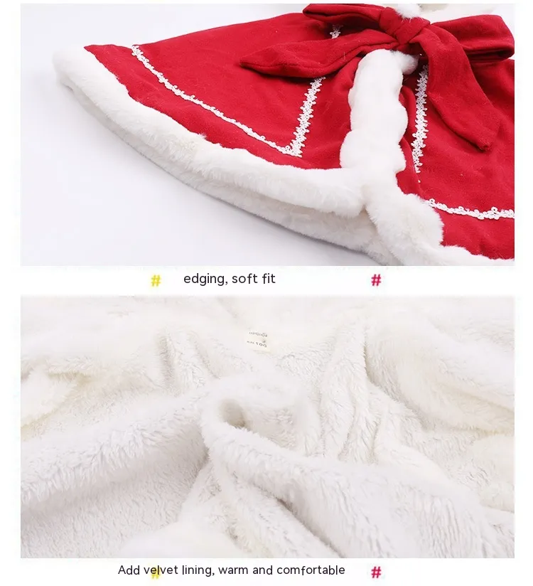 Product Description for Thickened Kids' Overcoat Fleece-lined Shawl with Fur Collar – Christmas Cape