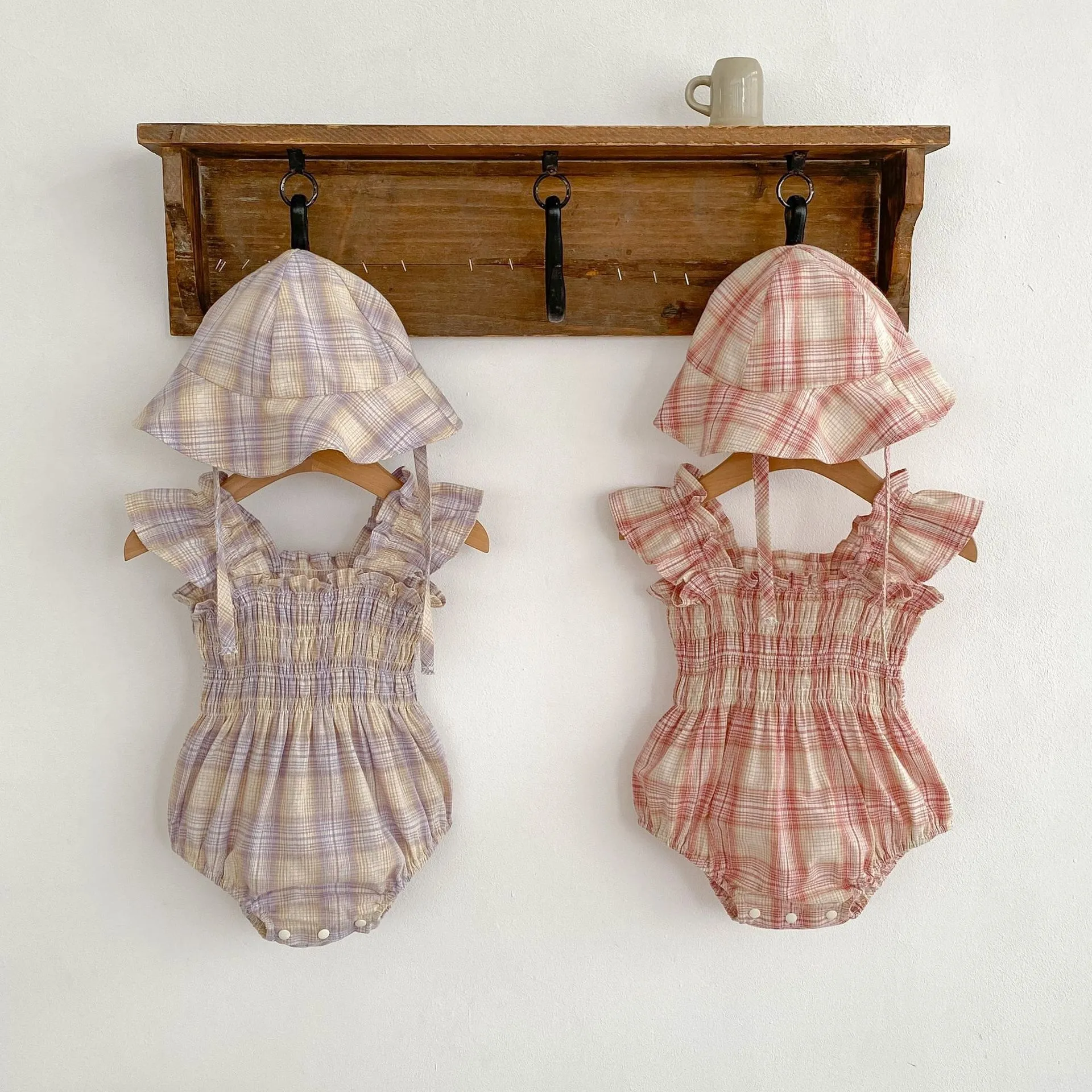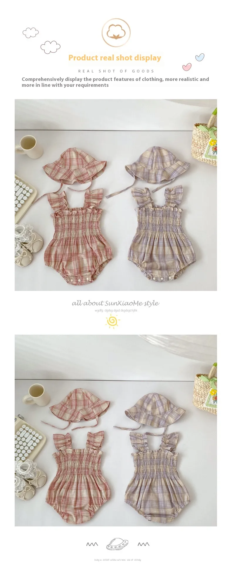 Thin Summer Clothing Baby Girl Color Matching Plaid Onesie Clothes – Get a Hat for Free!