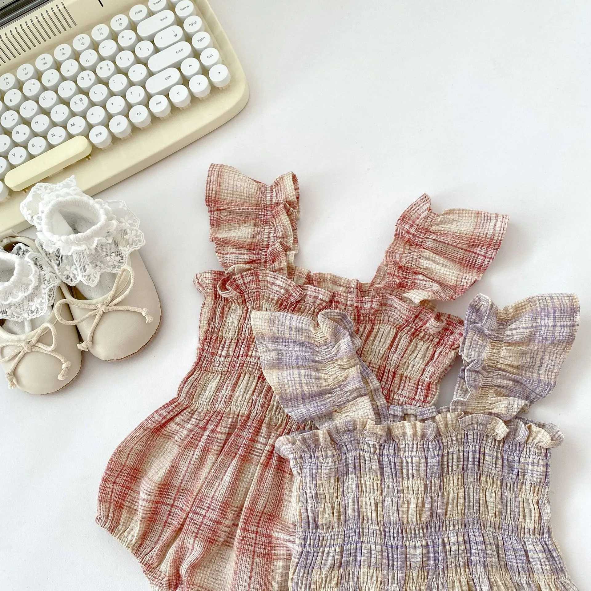 The onesie features a timeless plaid pattern, adding a touch of classic charm to your baby's summer wardrobe. Available in various color combinations, it offers versatility to suit different preferences and occasions.