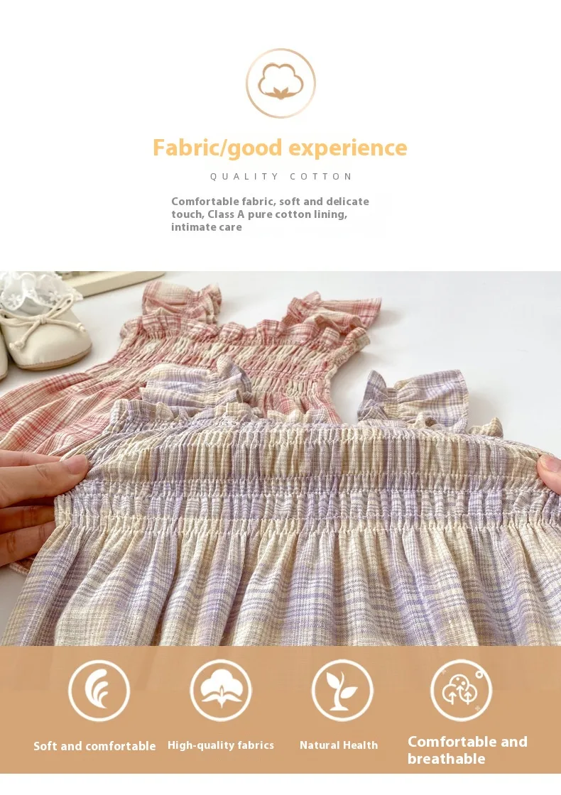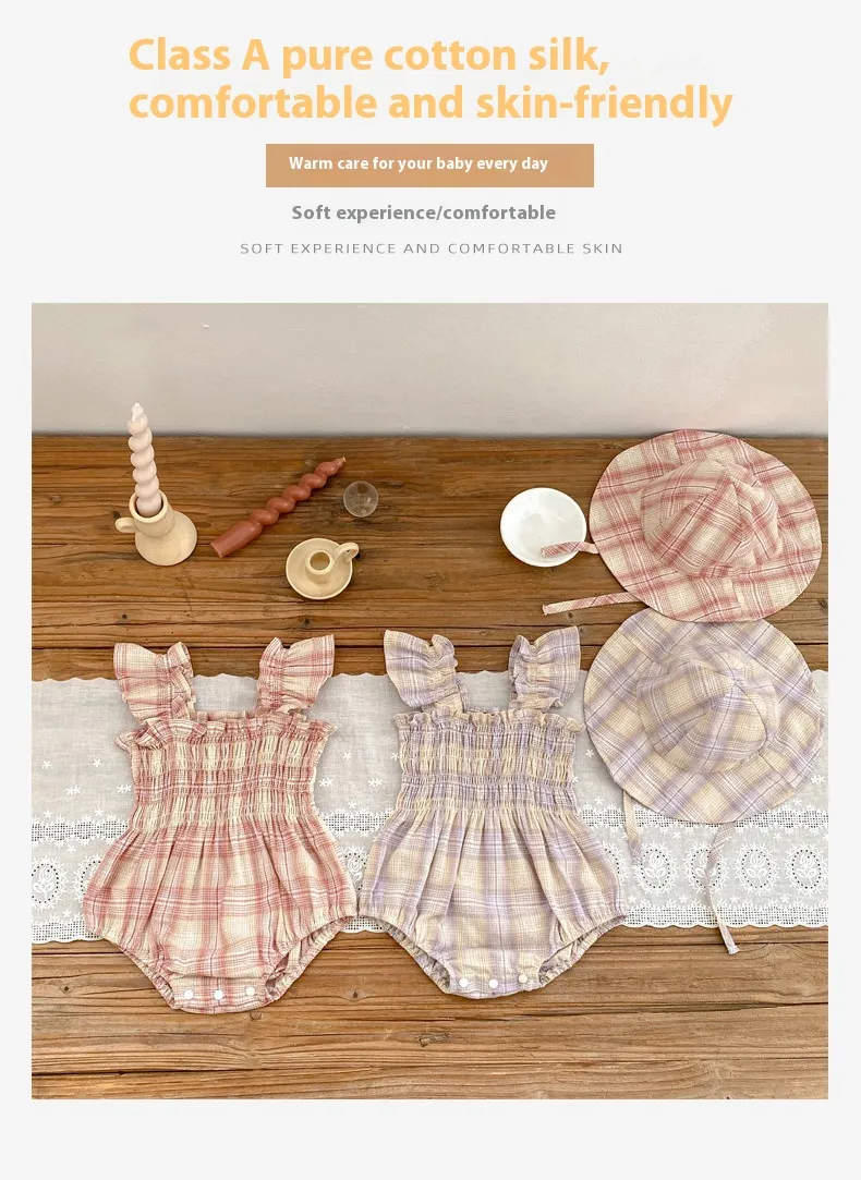Thin Summer Clothing Baby Girl Color Matching Plaid Onesie Clothes Get Hat For Free