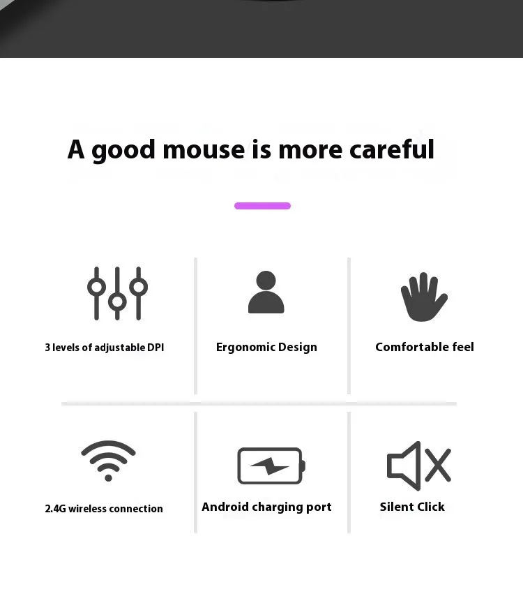 Say goodbye to battery changes. The mouse comes equipped with wireless charging functionality, allowing you to charge it effortlessly on a charging dock or compatible surface, providing ultimate convenience and minimal cable clutter.