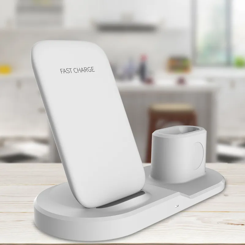 With the Three-in-One Wireless Charger, you can simultaneously charge your phone, smartwatch, and wireless earbuds. No need to juggle multiple charging cables or charging stations—everything you need is in one sleek device. Whether you're charging your iPhone, Samsung Galaxy, Apple Watch, or AirPods, this charger has you covered.