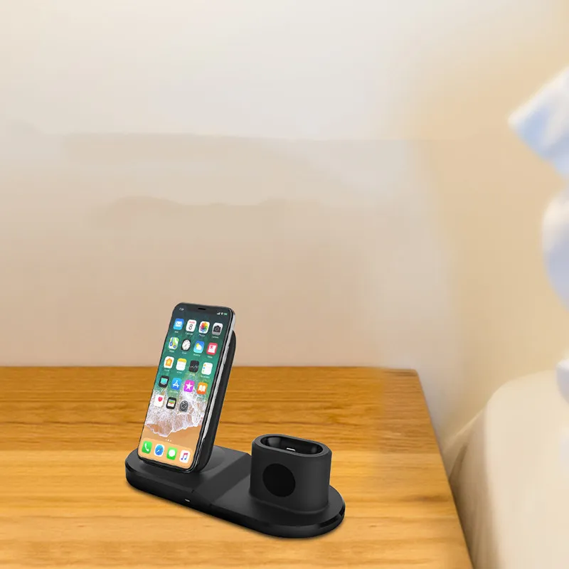 Designed with minimalism in mind, the Three-in-One Wireless Charger features a compact and space-saving design that fits seamlessly into any environment. Its slim profile makes it an ideal choice for a nightstand, desk, or workspace, helping to keep your charging area clean and organized.