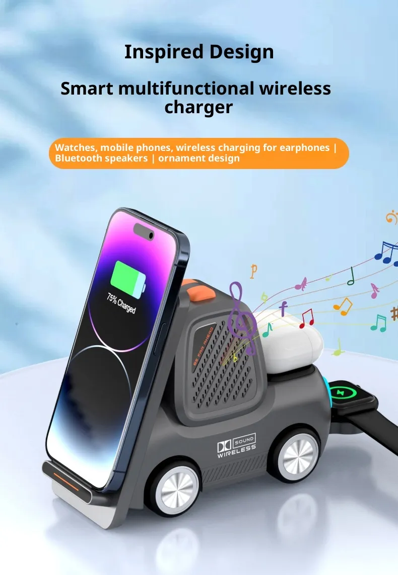 The Three‑in‑One Wireless Charger with Mobile Phone Holder is a sleek and practical charging stand designed to power your smartphone and