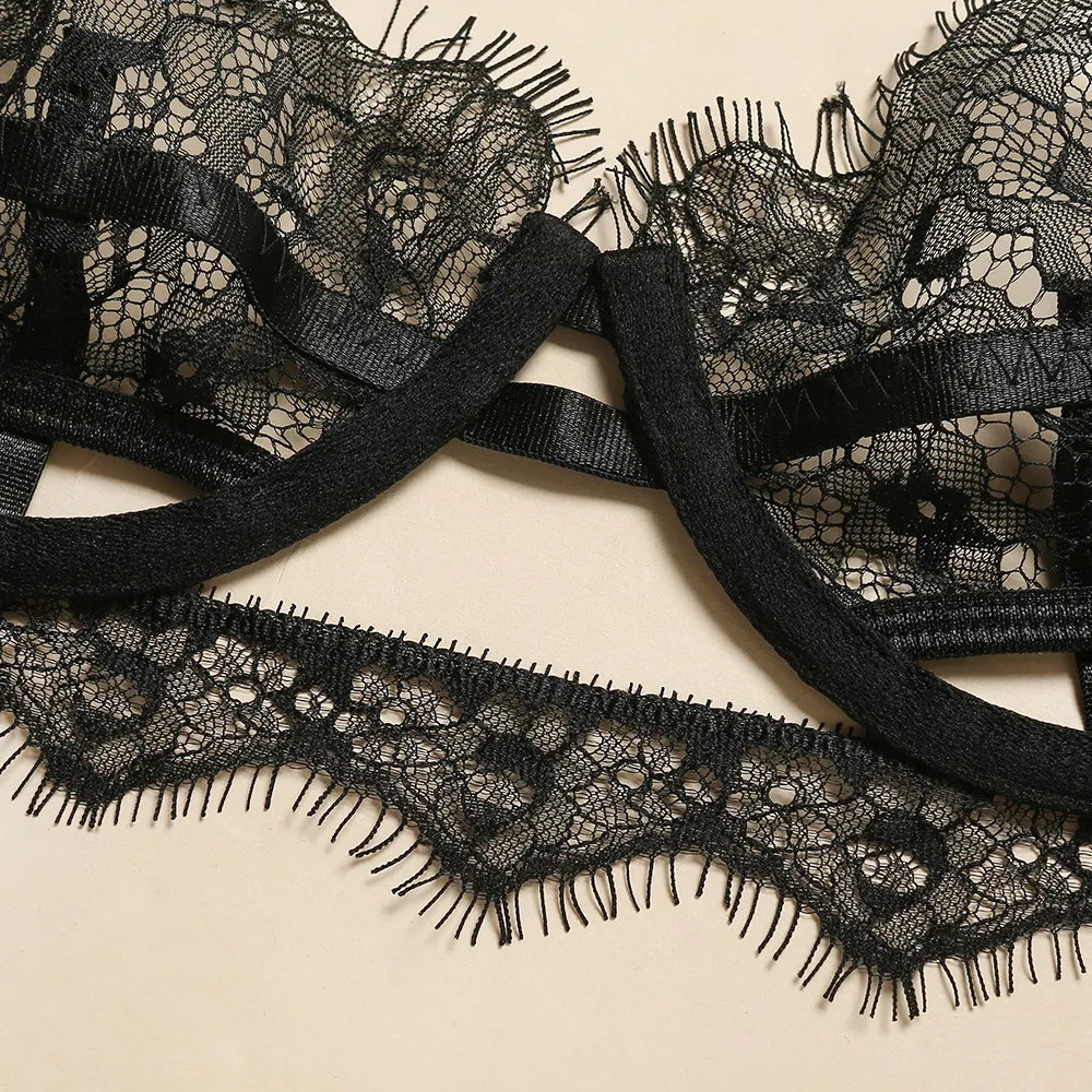 Three-Piece Lace Eyelashes See-Through Underwear: Elegant, Sensual, and Alluring