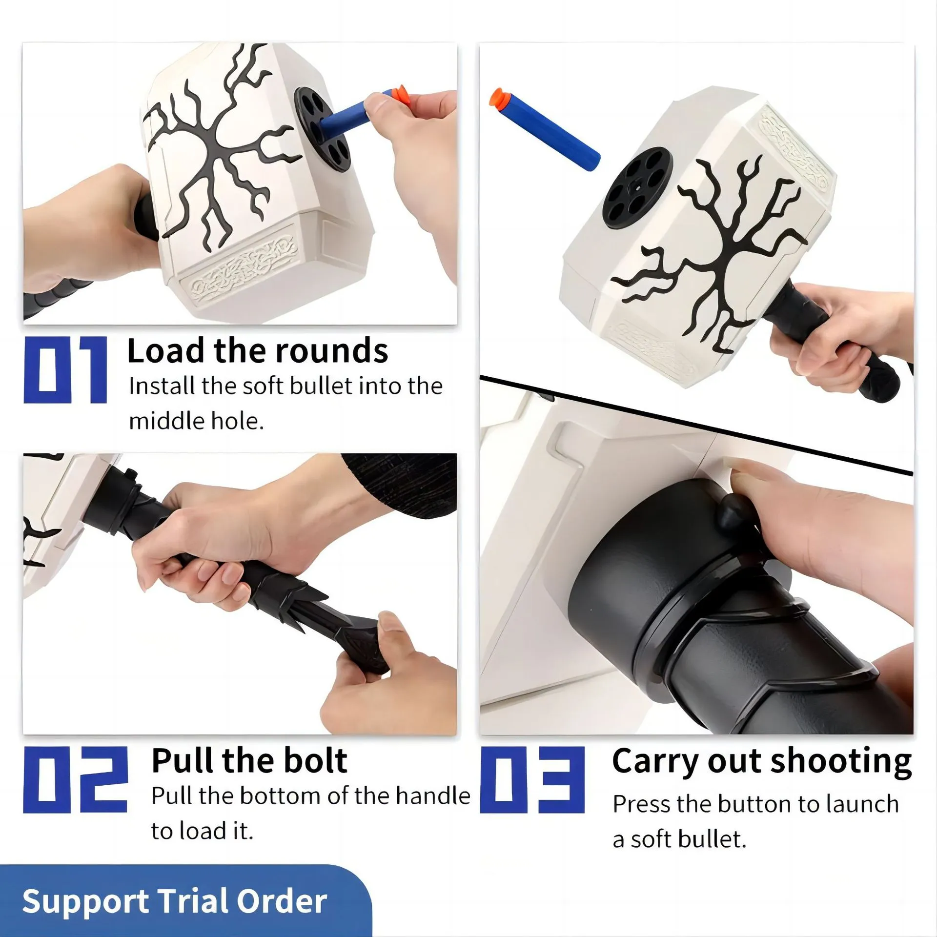 The Thunder God Hammer Launcher is designed to be easy for kids to use. The launcher’s simple, intuitive action ensures that kids can quickly get into the fun without the need for complicated instructions. Whether they’re pulling back the hammer or firing projectiles, this toy gun offers a seamless play experience, so kids can focus on the action.
