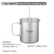 Tiartisan Pure Titanium French Press Coffee Mug 750ml Outdoor Hand Brewing Coffee Pot with Folding Handle and Mesh Storage Bag