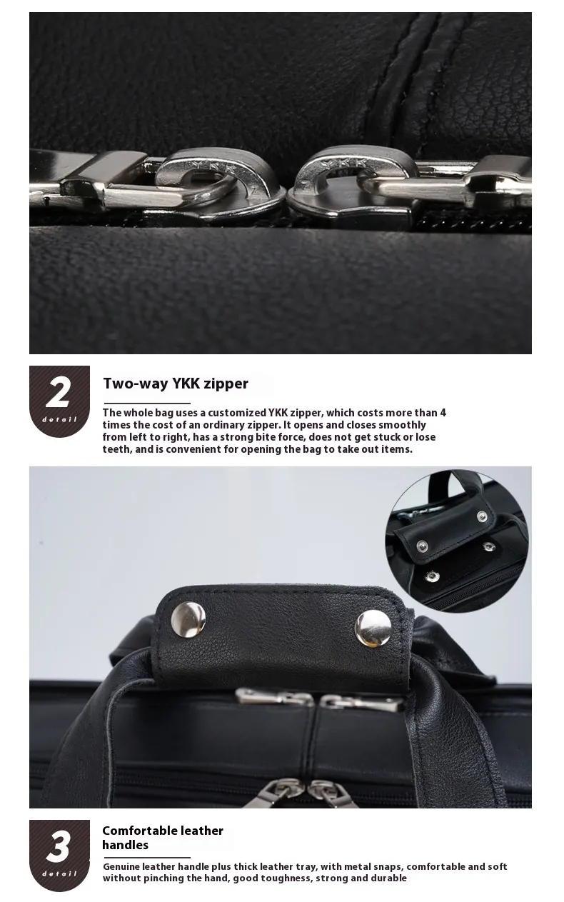 Elevate your professional look with the Tiding Leather Business First Layer Cowhide 17-Inch Laptop Bag, meticulously crafted for the modern professional. Made from premium first-layer cowhide leather, this laptop bag not only exudes sophistication but also promises durability and longevity. Its elegant design combines functionality and style, making it the perfect accessory for business meetings, travel, or daily commutes. The spacious main compartment comfortably fits up to a 17-inch laptop, along with additional pockets for your documents, chargers, and other essentials, ensuring you stay organized while on the go.The Tiding Leather Laptop Bag features a sleek, minimalist design with sturdy stitching and a rich texture that enhances its luxurious appeal. The adjustable and removable shoulder strap provides versatility, allowing you to carry it comfortably as a shoulder bag or by the top handles. The padded laptop compartment offers extra protection, safeguarding your device from bumps and scratches during transport.Designed for practicality, this laptop bag also includes exterior pockets for quick access to your phone, keys, or other small items, keeping everything within reach. The timeless aesthetic of the Tiding Leather Business Bag makes it suitable for both formal and casual settings, ensuring you make a lasting impression wherever you go. Invest in a blend of style, functionality, and quality with this exceptional leather laptop bag, tailored for professionals who appreciate the finer things in life.