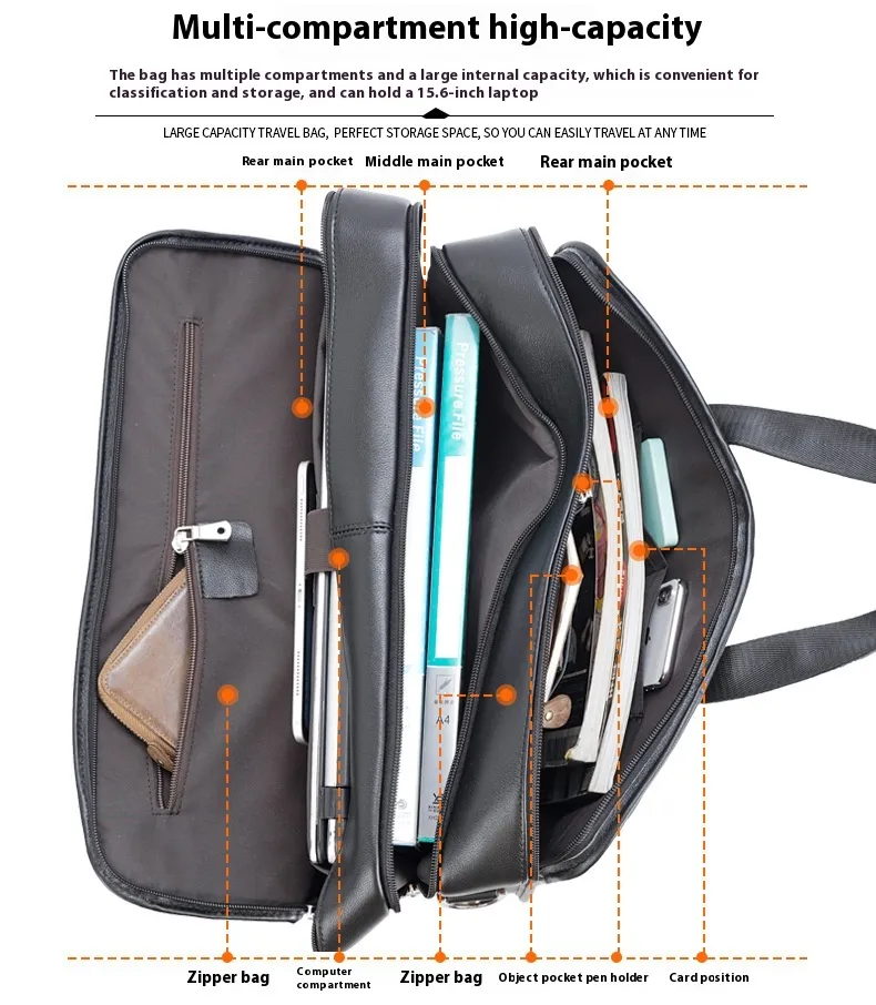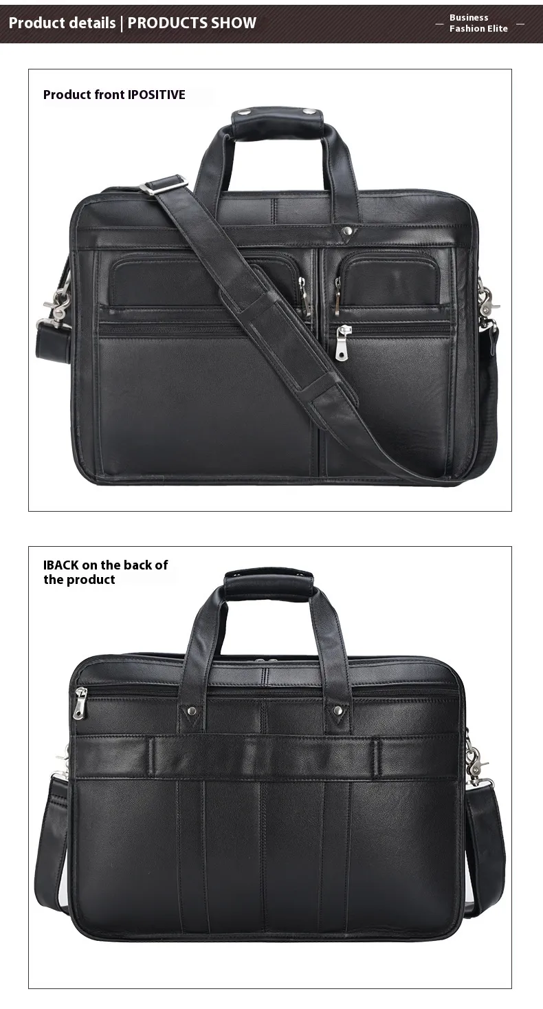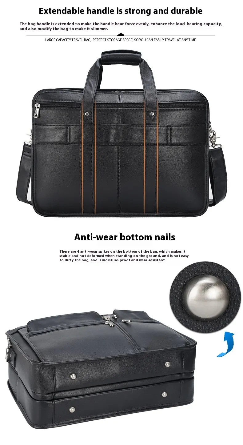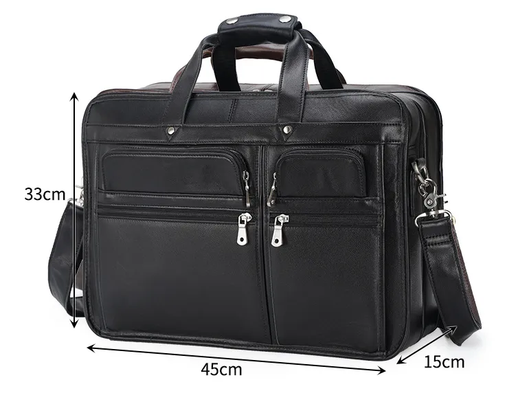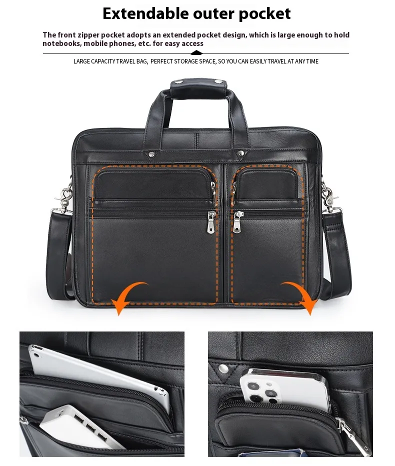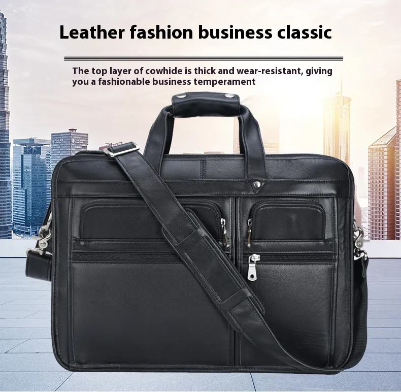 Elevate your professional look with the Tiding Leather Business First Layer Cowhide 17-Inch Laptop Bag, meticulously crafted for the modern professional. Made from premium first-layer cowhide leather, this laptop bag not only exudes sophistication but also promises durability and longevity. Its elegant design combines functionality and style, making it the perfect accessory for business meetings, travel, or daily commutes. The spacious main compartment comfortably fits up to a 17-inch laptop, along with additional pockets for your documents, chargers, and other essentials, ensuring you stay organized while on the go.The Tiding Leather Laptop Bag features a sleek, minimalist design with sturdy stitching and a rich texture that enhances its luxurious appeal. The adjustable and removable shoulder strap provides versatility, allowing you to carry it comfortably as a shoulder bag or by the top handles. The padded laptop compartment offers extra protection, safeguarding your device from bumps and scratches during transport.Designed for practicality, this laptop bag also includes exterior pockets for quick access to your phone, keys, or other small items, keeping everything within reach. The timeless aesthetic of the Tiding Leather Business Bag makes it suitable for both formal and casual settings, ensuring you make a lasting impression wherever you go. Invest in a blend of style, functionality, and quality with this exceptional leather laptop bag, tailored for professionals who appreciate the finer things in life.