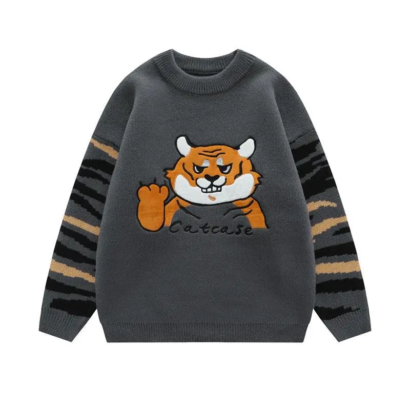 The standout feature is the detailed tiger motif or pattern — either knitted, printed, or embroidered — which adds fierce personality and unique flair to your wardrobe.