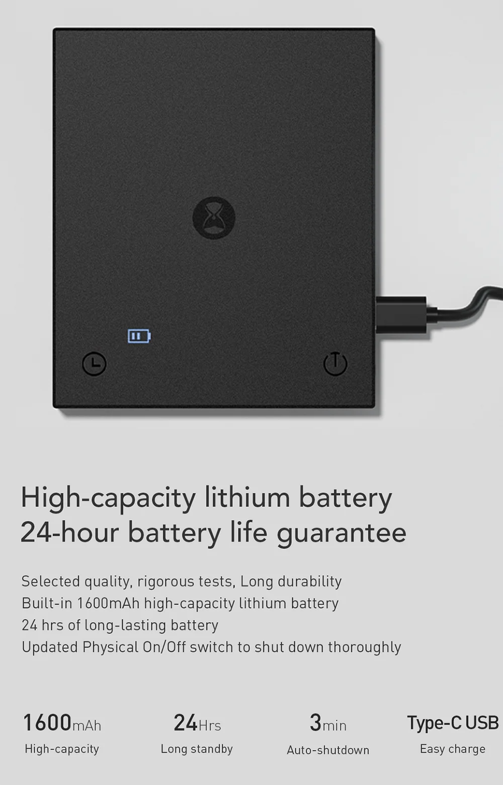 Its compact size and light weight make the TIMEMORE coffee scale easy to store and ideal for small kitchen spaces or for taking on the go.