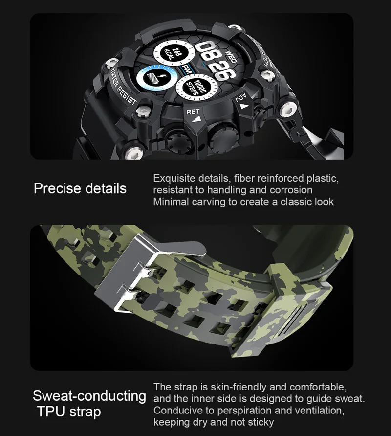 Elevate your fitness and adventure escapades with the unparalleled resilience of the Men's Sport Waterproof Smartwatch. This timepiece is not just a watch; it's a testament to rugged elegance and cutting-edge technology, meticulously tailored for those who demand excellence in every aspect of their active lives. Its sturdy build and water resistance up to 50 meters mean that whether you're braving the rapids or conquering mountain peaks, your smartwatch is as unyielding as your spirit.