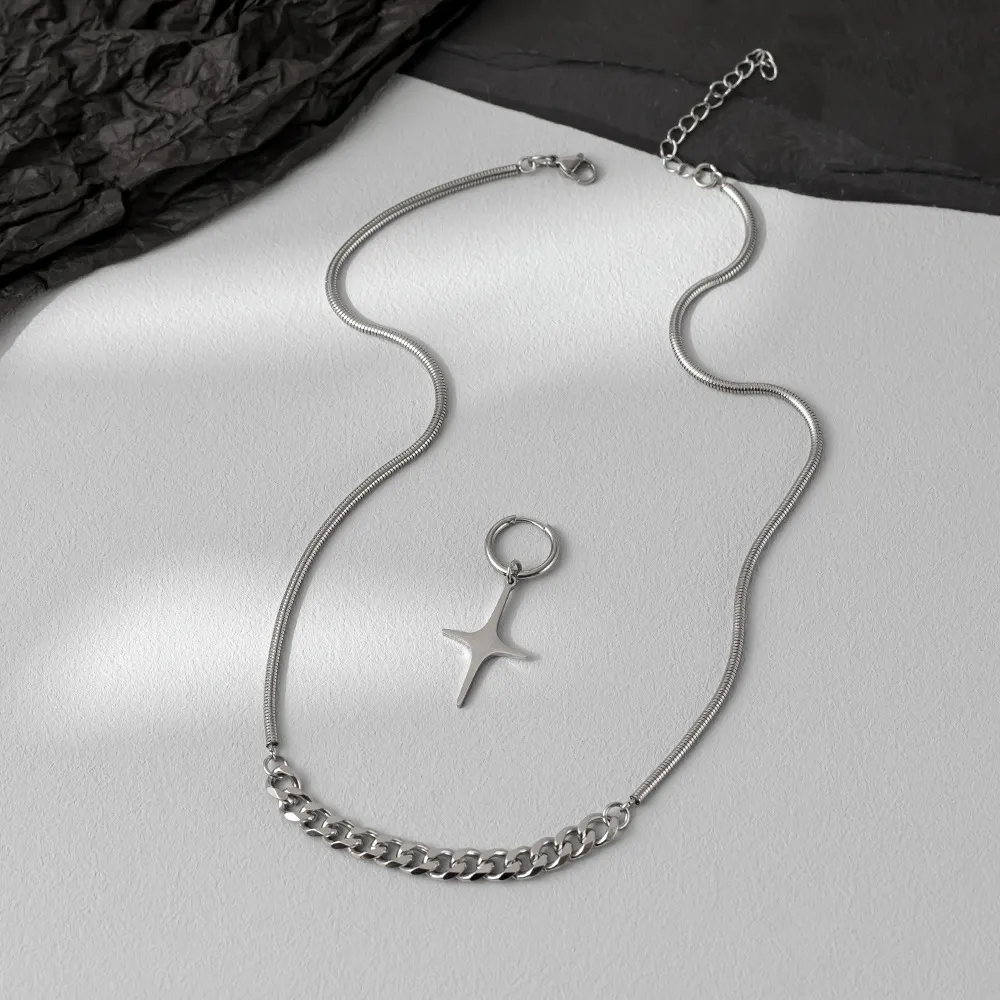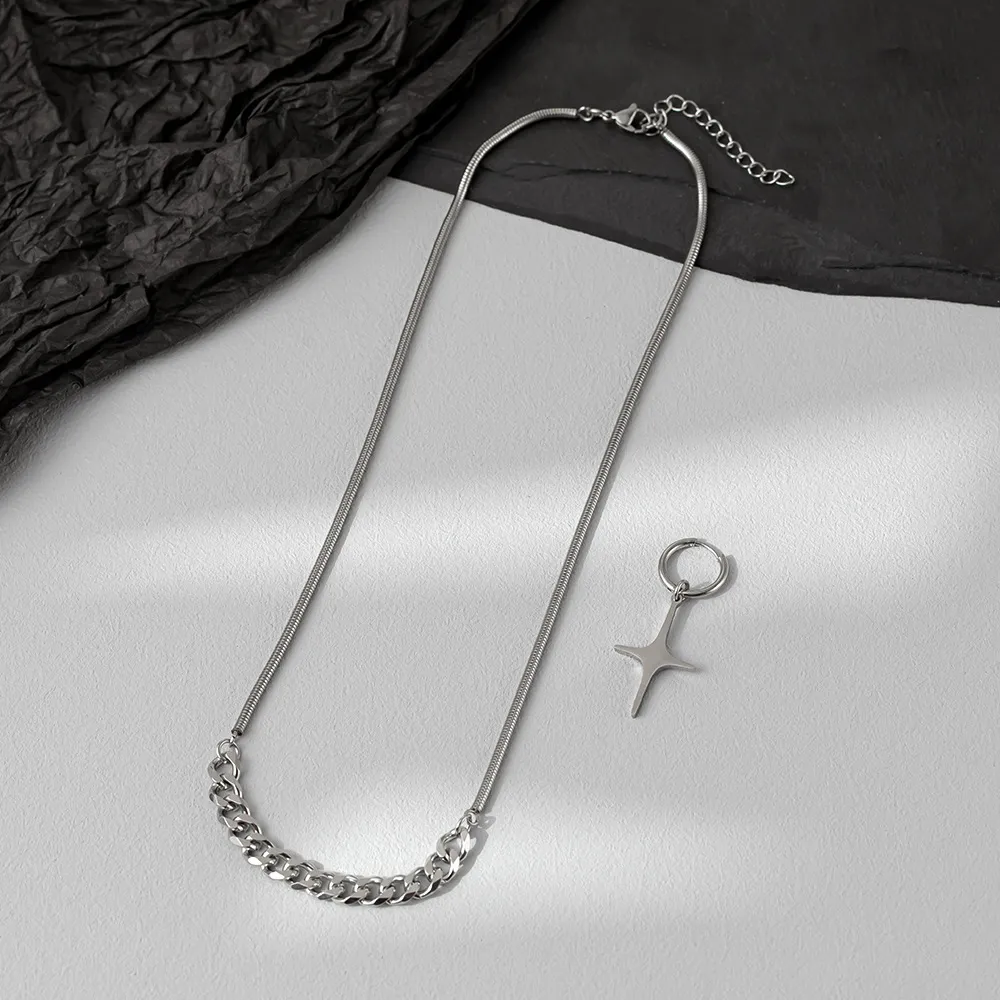 Titanium Steel Colorless Pendant Cuban Necklace