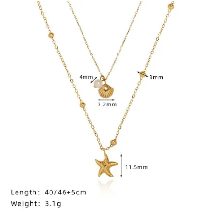 The Titanium Steel High Color Retention Double-Layer Starfish Shell Necklace combines the natural beauty of the ocean with modern elegance, offering a unique and stylish accessory. Designed with a double-layer structure, this necklace features a starfish shell pendant that brings a touch of the sea to your wardrobe. With its vacuum vapor plating in 18K gold, this piece exudes luxury while maintaining durability and color retention over time.