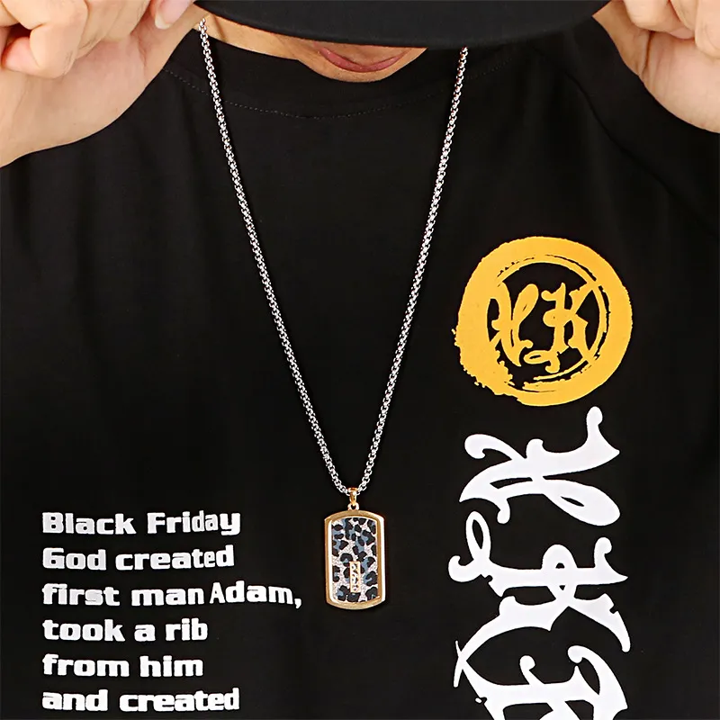 Titanium Steel Long Military Pendant Mesh Stainless Steel Diamond Pendant Necklace Accessories