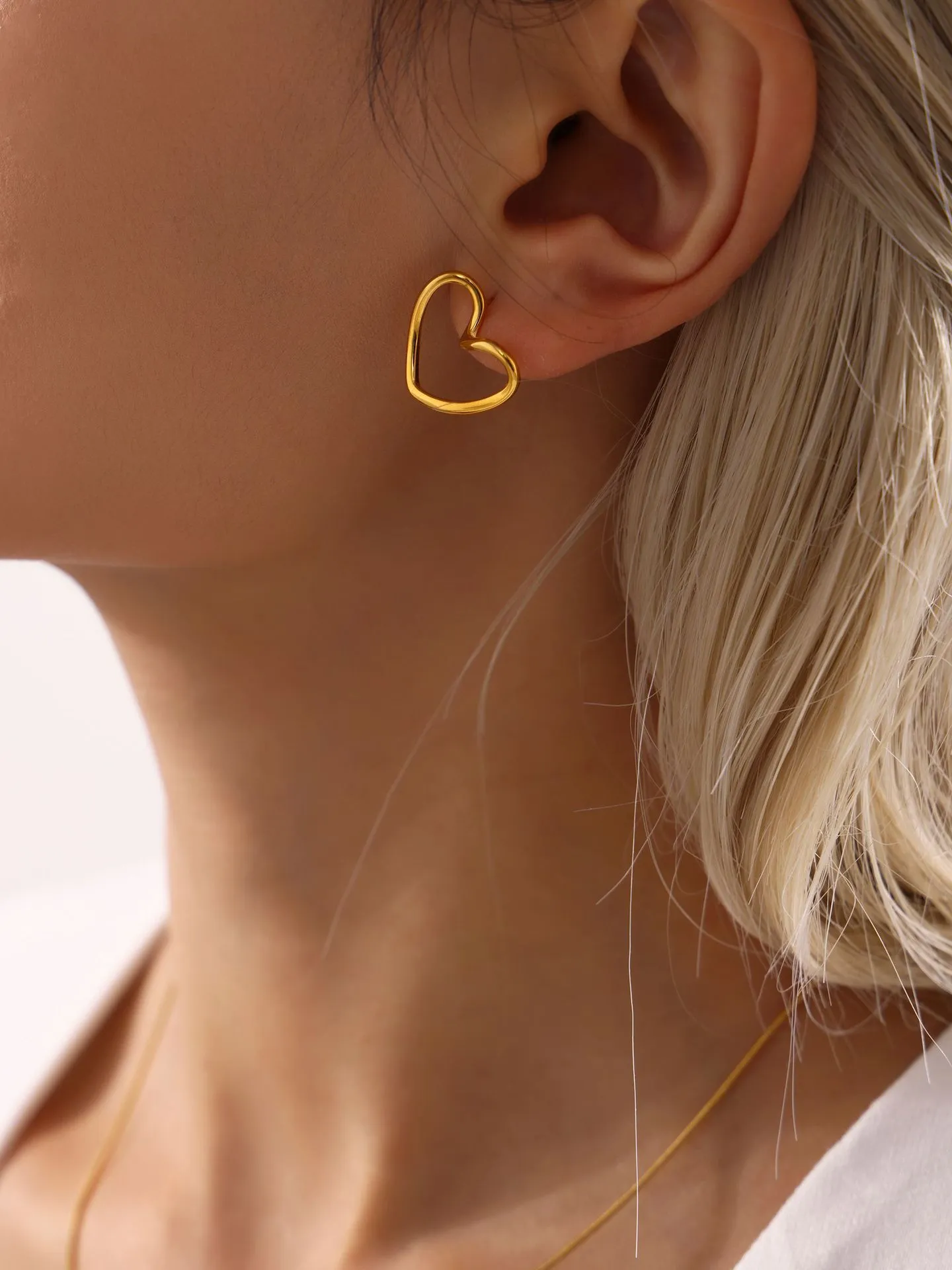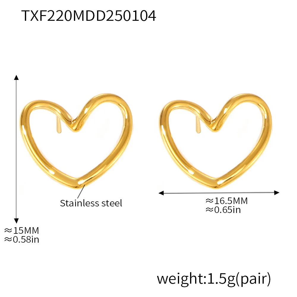 Titanium Steel PVD Electroplating 18K Real Gold Hollow Heart Ear Studs