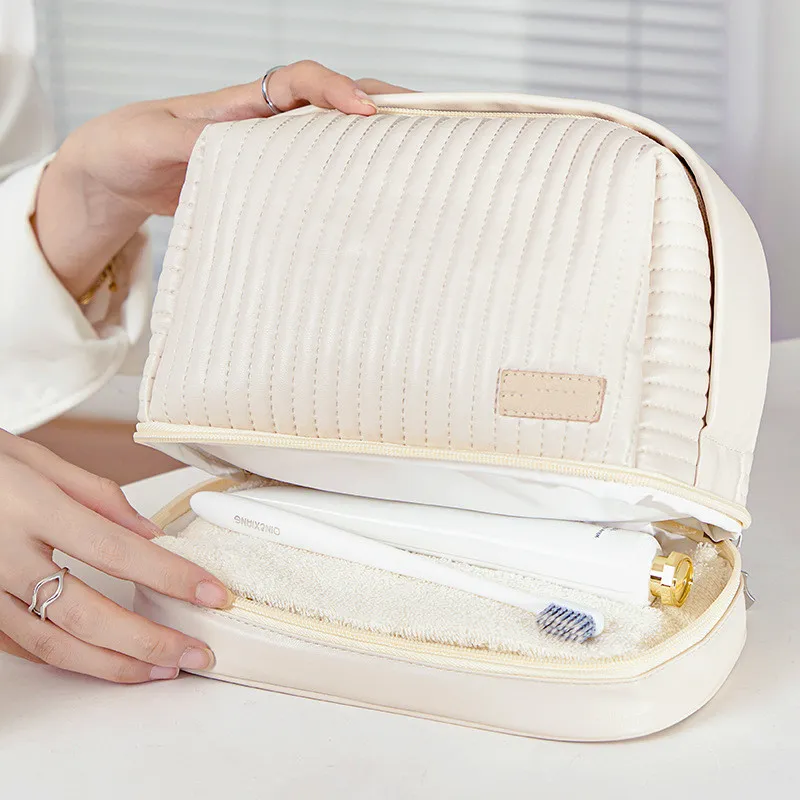 Offers ample space to store makeup, skincare, toiletries, or travel essentials, keeping them neatly organized.