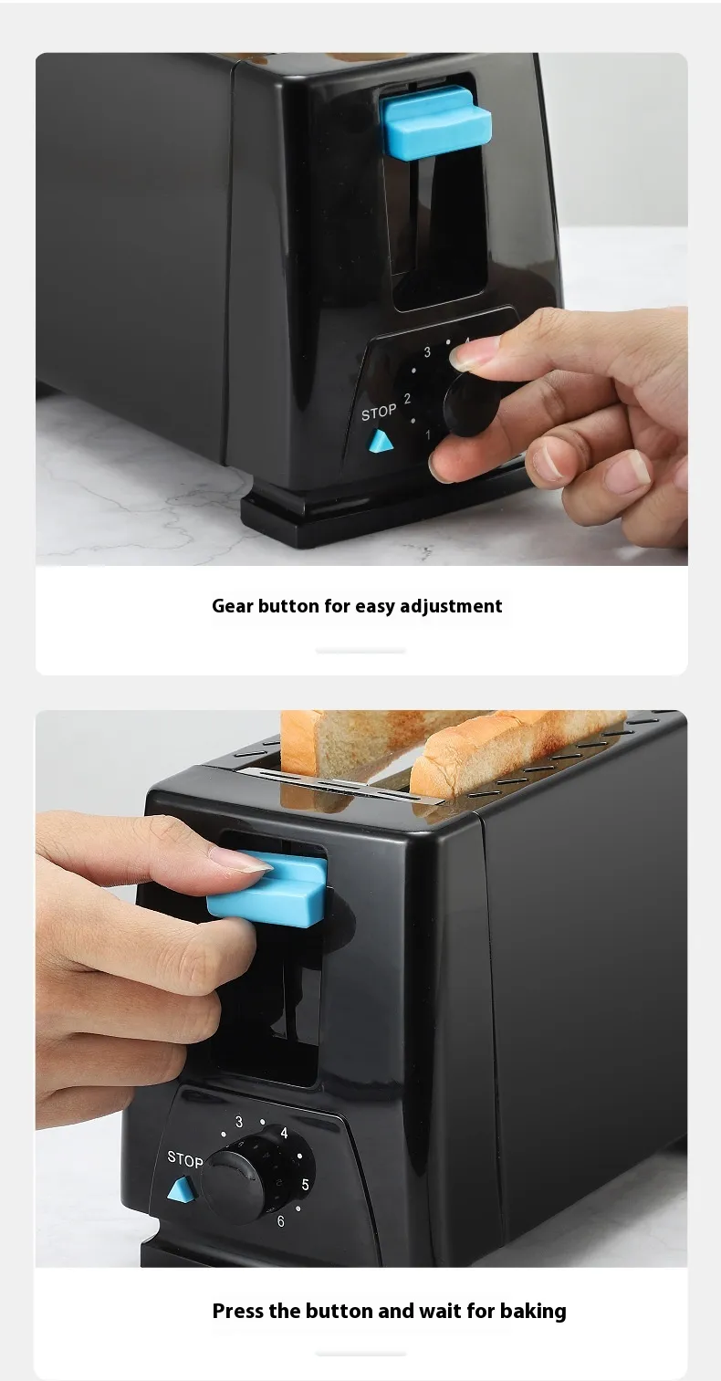 Non-Stick Heating Plates: The non-stick coated plates ensure even toasting and make cleanup a breeze. Bread slides out