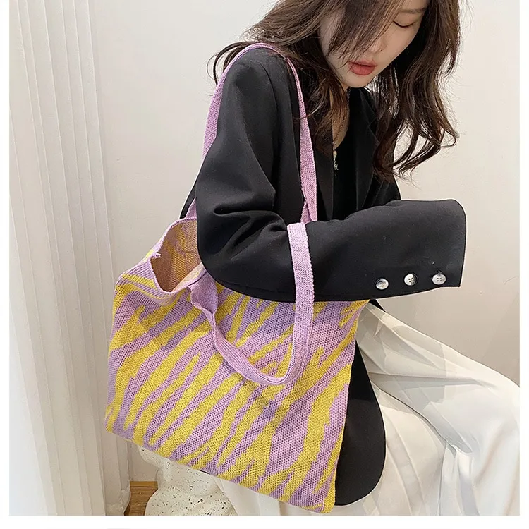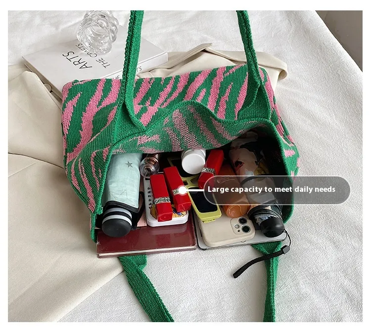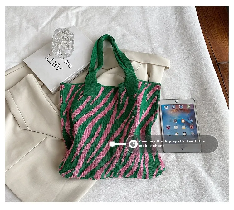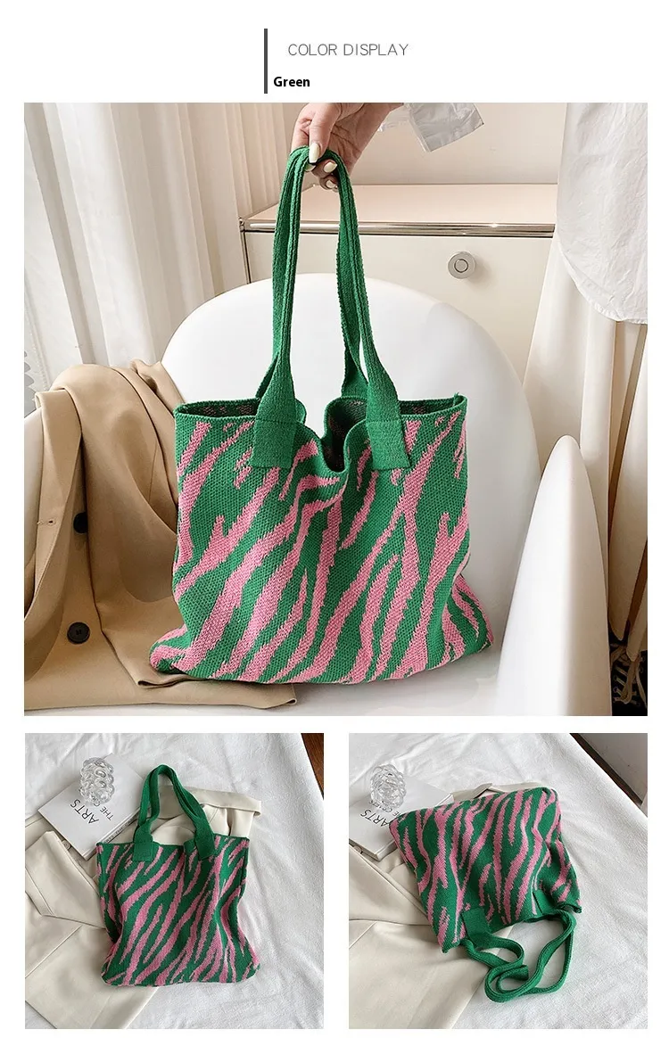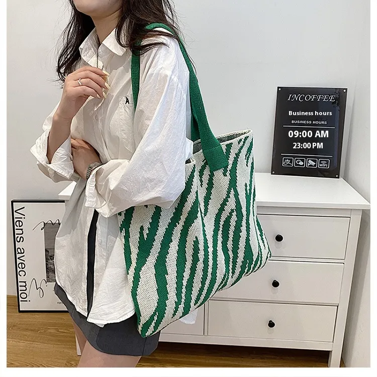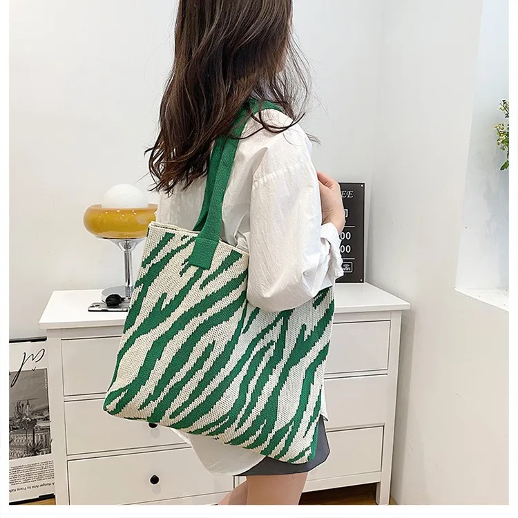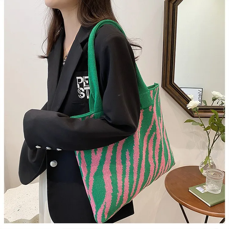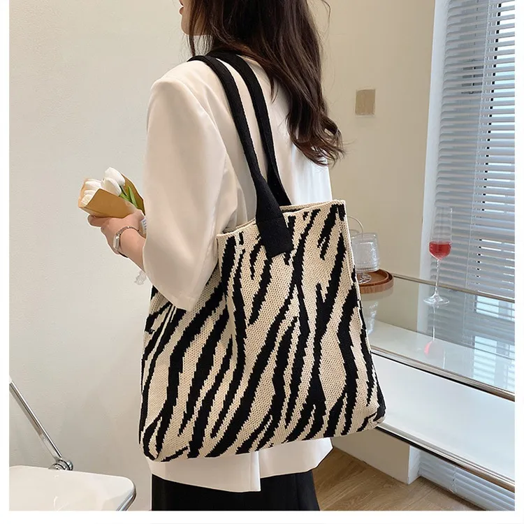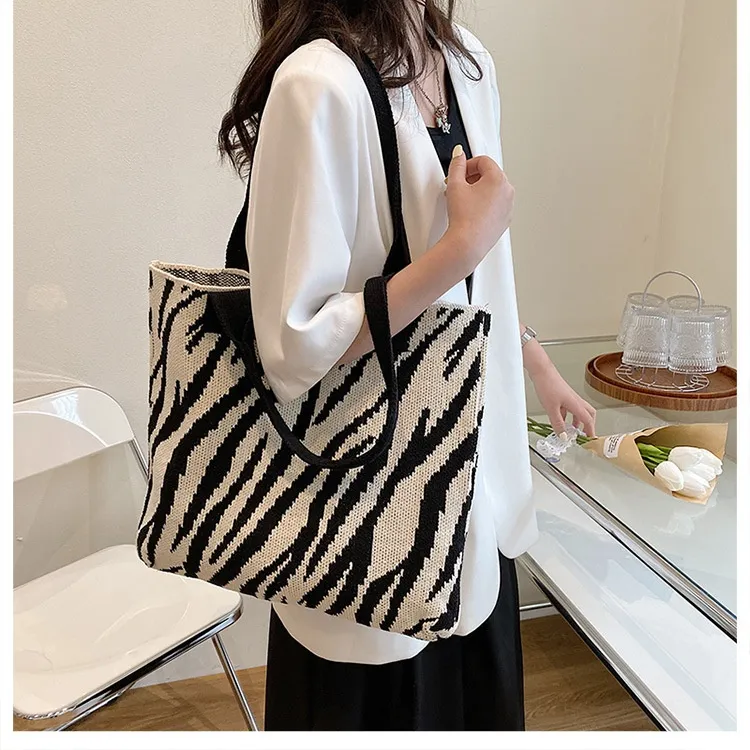 Tote New Large Capacity Single Shoulder Zebra Pattern Knitted Bag Women