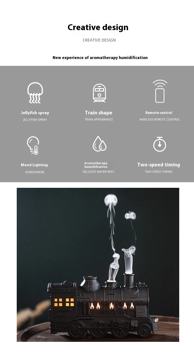 Train Humidifier Aroma Diffuser – Steam-Powered Relaxation with Style