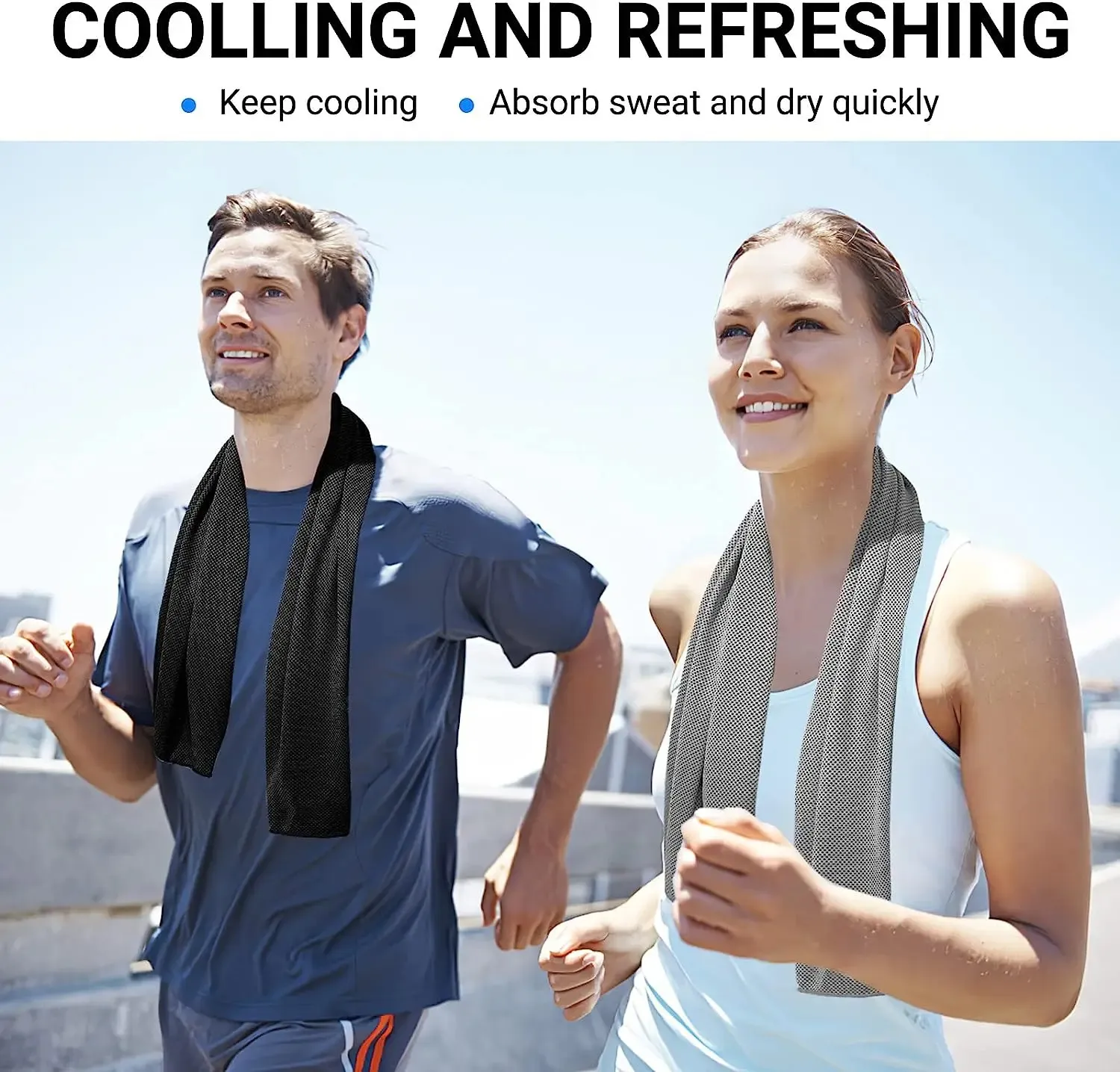 【SAFE & ECO-FRIENDLY】-- Cooling towel is made of super ice hyper-evaporative breathable material. Working on the physical evaporation of moisture. No chemicals are used in the making of the cooling towels, free from any chemical additive and smell.