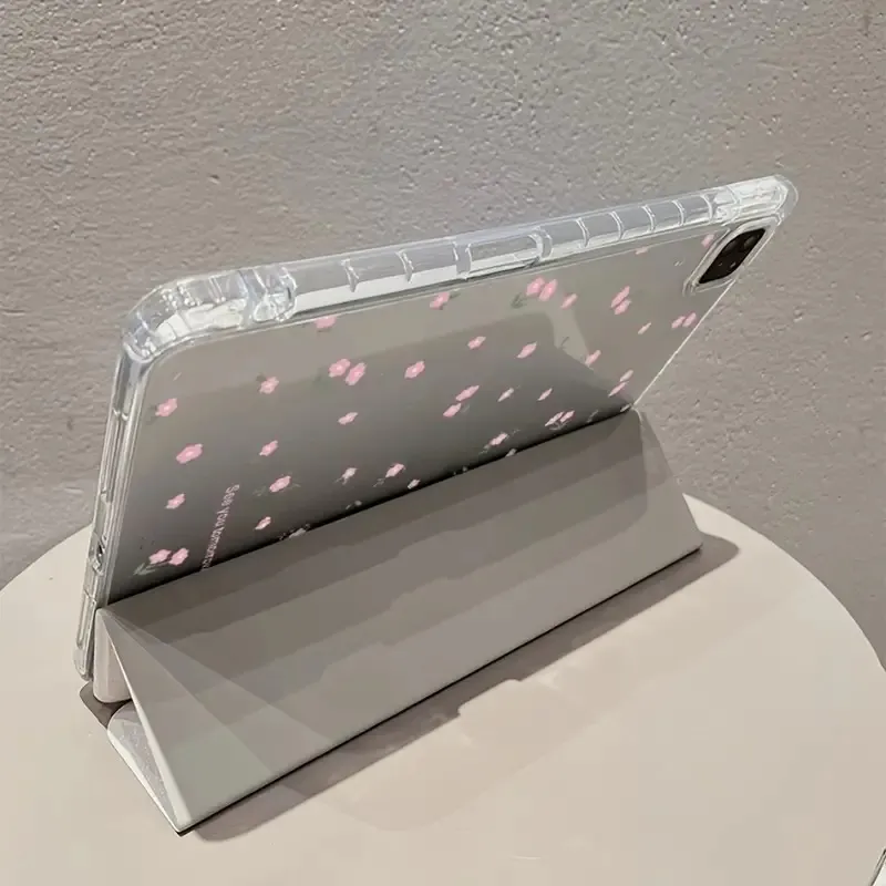 Transparent Floral Tri-fold Tablet Protective Case – Stylish and Durable Protection for Your Tablet