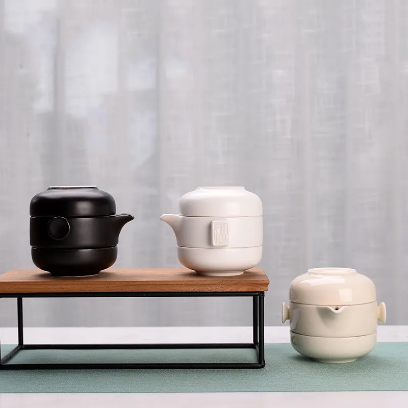 Travel Tea Set with Portable Bag, One Pot, Two or Four Cups, Fast Passenger Cup, Car Kung Fu Teapot with Logo Customization