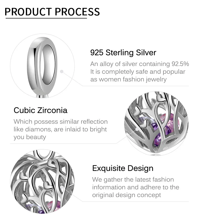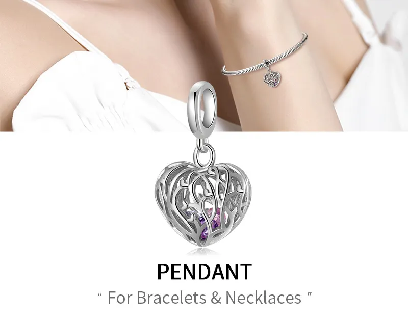Tree Spreading Heart Shaped Beads S925 Sterling Silver Hollow Pendant Bracelet DIY Accessories Pendant