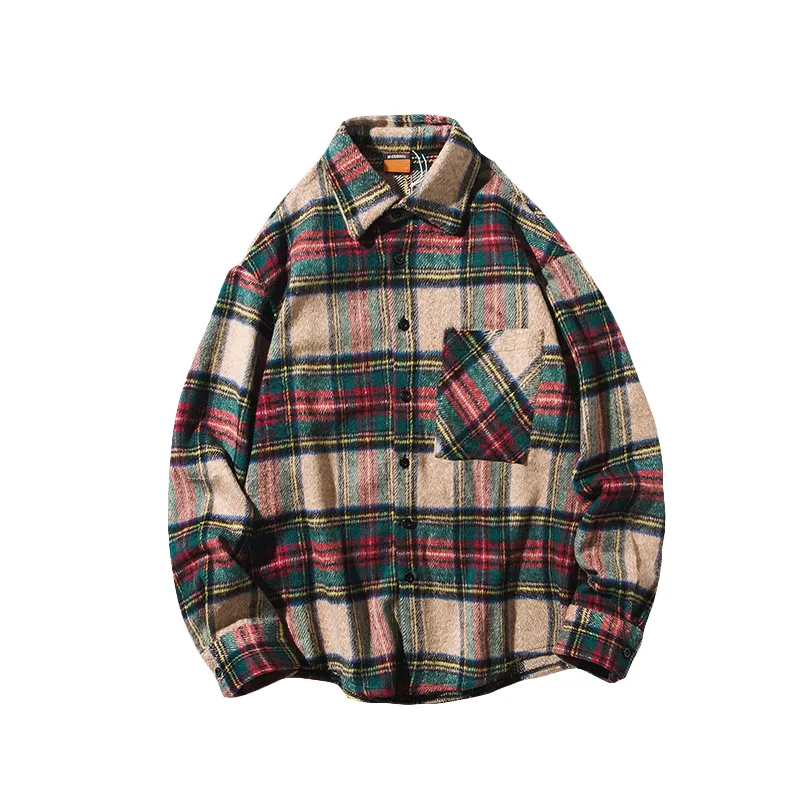 Trendy Cool Coat Long-Sleeved Plaid Shirt – Casual, Comfortable, and Fashionable