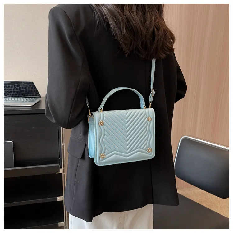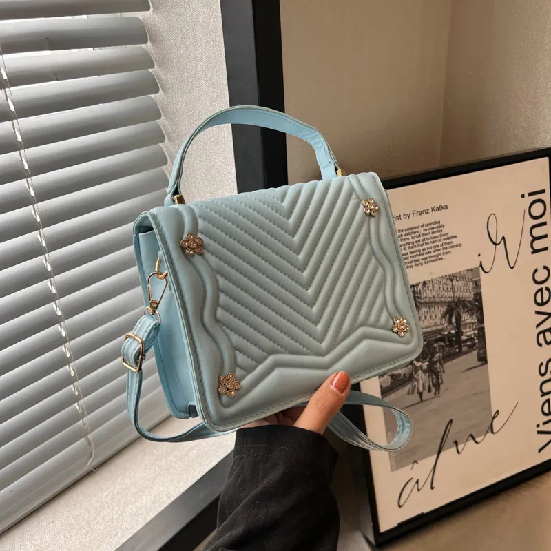 Trendy Small Square Simple Indentation Rhombus Shoulder Bag