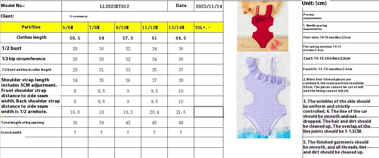 The oblique shoulder ruffles add a playful and feminine detail to the design, giving the swimsuit a unique, elegant touch. The ruffles enhance the overall look, making it not only a practical swimwear option but also a fashionable one. This swimsuit is perfect for little girls who love to stand out and express their fun, vibrant personality.