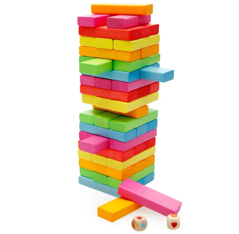 First of all, the three building blocks are one-layer, staggered and built into a tower.