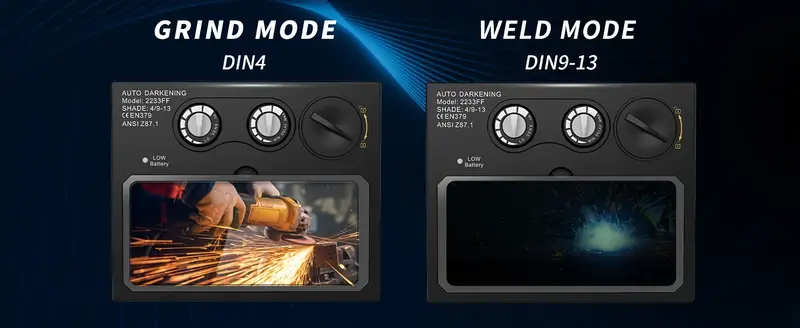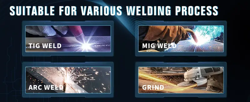 - Auto protection: 2 arc sensors switch fast to the selected shade (9–13)