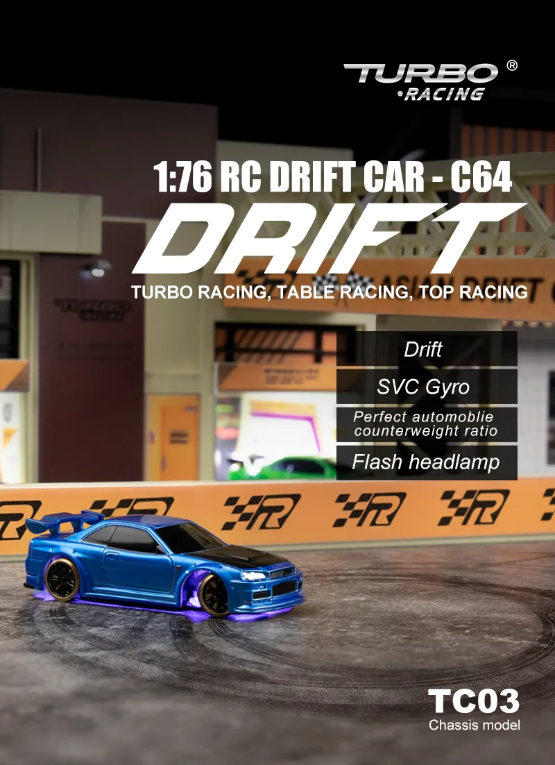 Turbo Racing 1vs76 C64 Drift RC Car With Gyro Radio Full Proportional Remote Control Toys RTR Kit For Kids And Adults