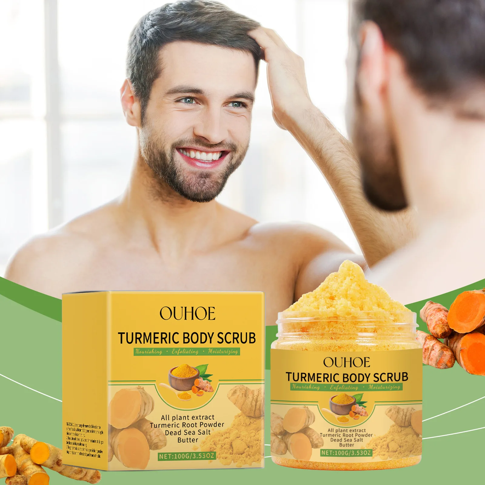 Discover the transformative power of our Turmeric Body Scrub, meticulously crafted to exfoliate, lighten, and rejuvenate your skin. Suitable for both women and men, this luxurious scrub combines the natural benefits of turmeric with nourishing ingredients to reveal smoother, brighter, and more radiant skin.
