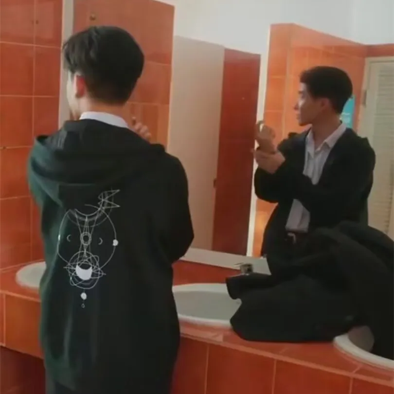 The choice of black is more than just a nod to the drama’s edgy ambiance; it’s also a timeless neutral that effortlessly fits into anyone’s wardrobe. The design channels the essence of First Khaotung’s character—striking, confident, and full of personality. Subtle references to the show might include embroidered details, screen-printed motifs, or even symbolic touches reminiscent of pivotal scenes. This thoughtful design approach ensures the hoodie appeals to both hardcore fans and those who simply appreciate a sleek sweatshirt.
