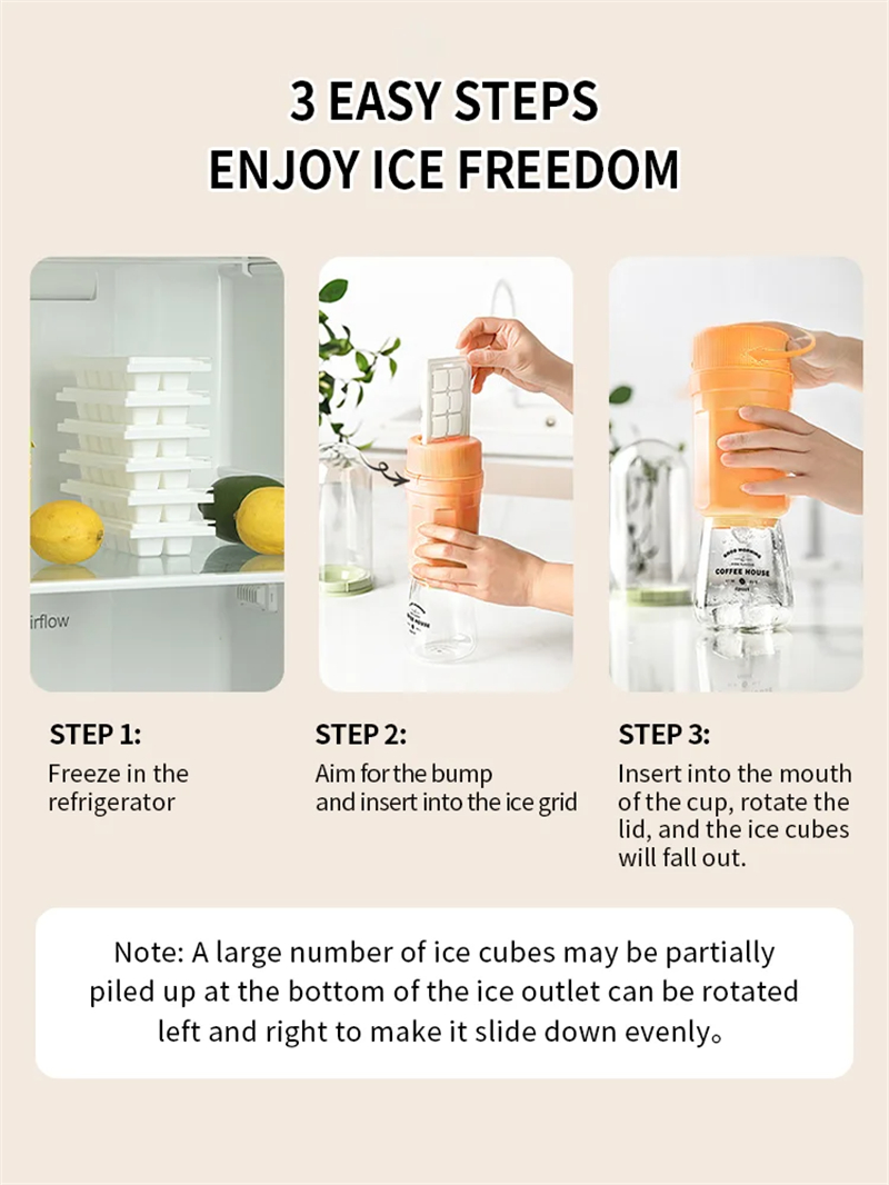 The ice cube tray comes with a sealing lid that tightly covers the tray, preventing spills, ice sticking, and odors. This innovative design ensures your ice cubes remain delicious and free from any unwanted smells.