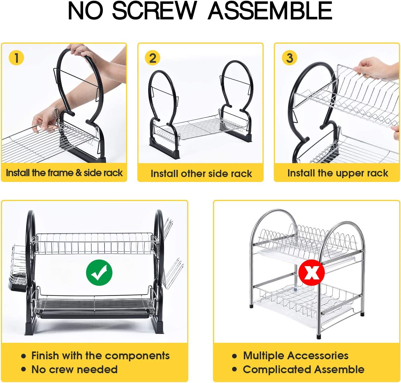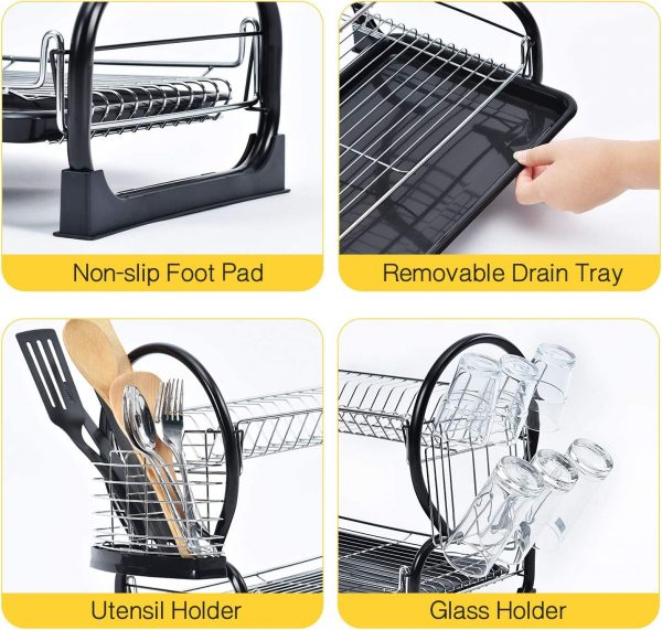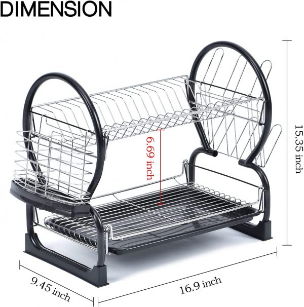 Two-Tier Design for Maximum Capacity: The double-layer structure of this dish rack significantly increases its capacity,
