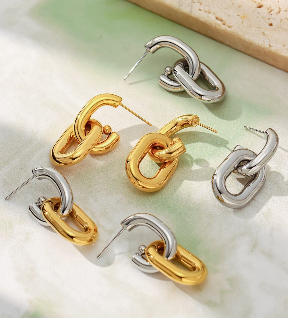Elevate your accessory game with the Two-Tone Oval Circular Ring Dangle Earrings. Crafted from stainless steel with a luxurious 18K gold plating, these earrings offer a striking design with long-lasting durability. The waterproof, non-tarnish finish ensures they remain beautiful with minimal maintenance, while the dangle hoop style offers both comfort and elegance.