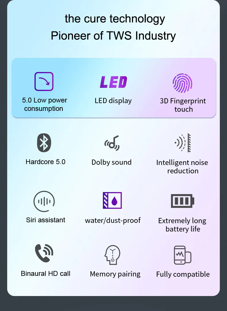 - For Travel: Lightweight and compact, the TWS Bluetooth Headset is the ideal travel companion. Whether you're on a plane, train, or bus, enjoy uninterrupted audio and take calls with ease.