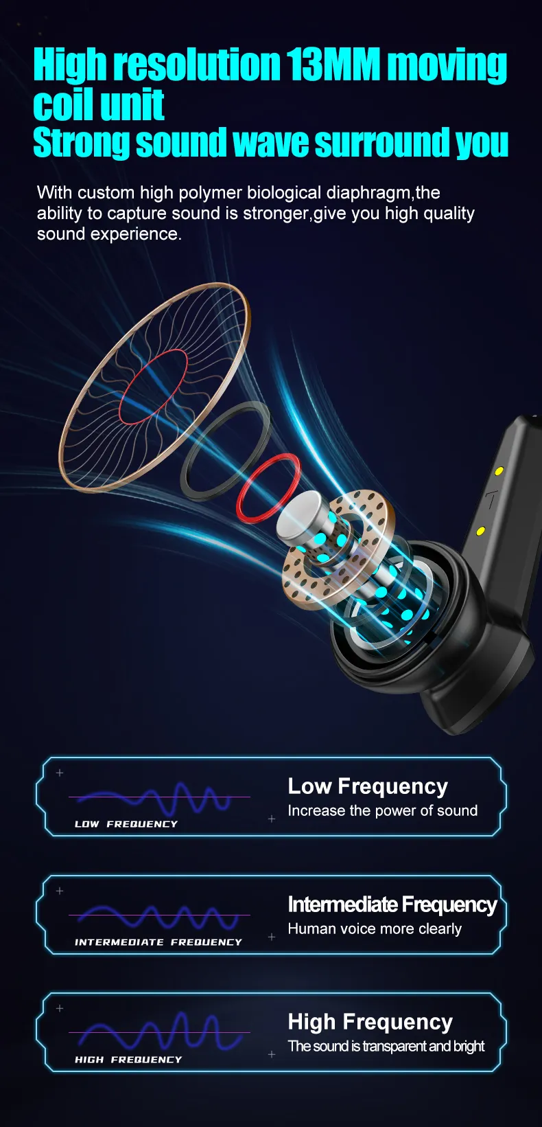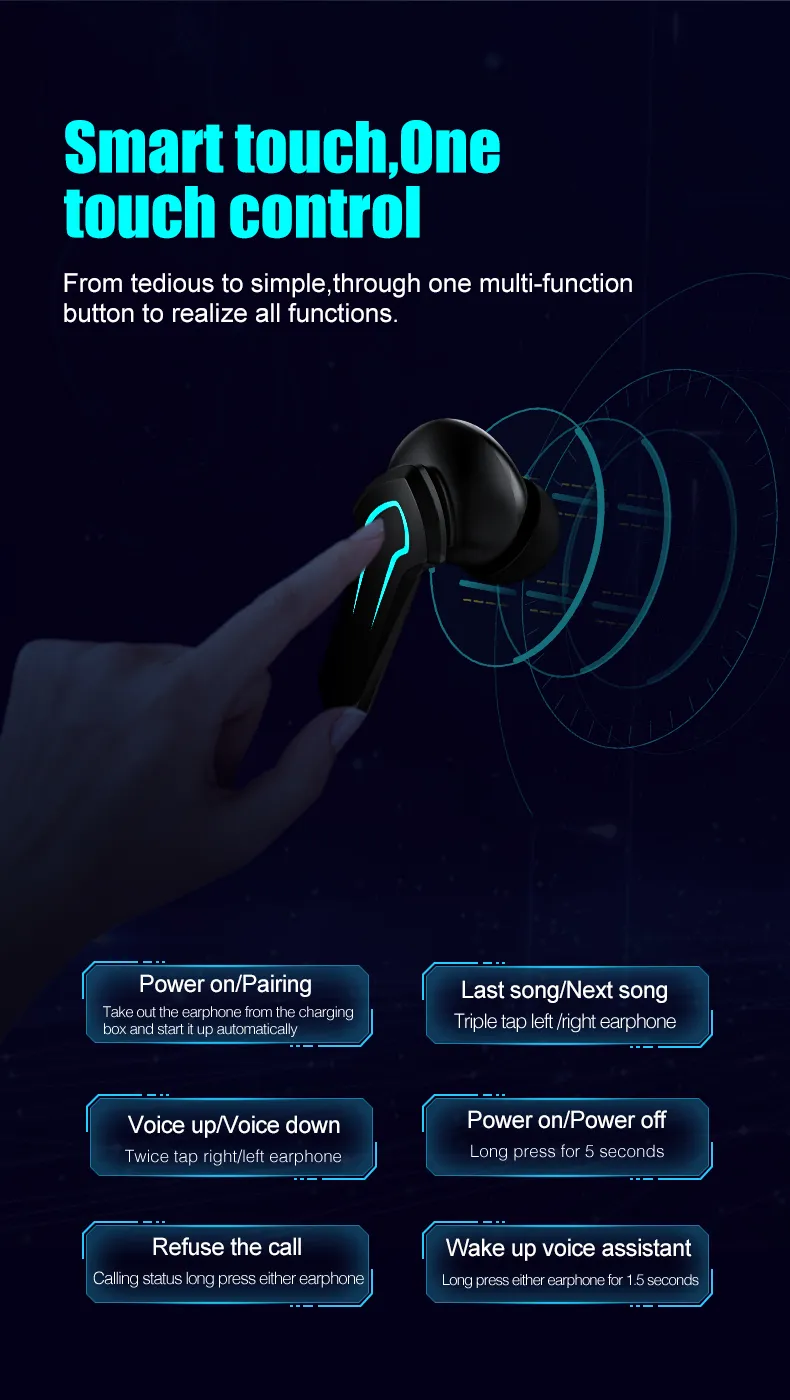 TWS Gaming Headset Gamer Without Delay 360 Stereo Wireless Bluetooth 5.1 Headphones Sports Earplugs With Microphone 10 Hours