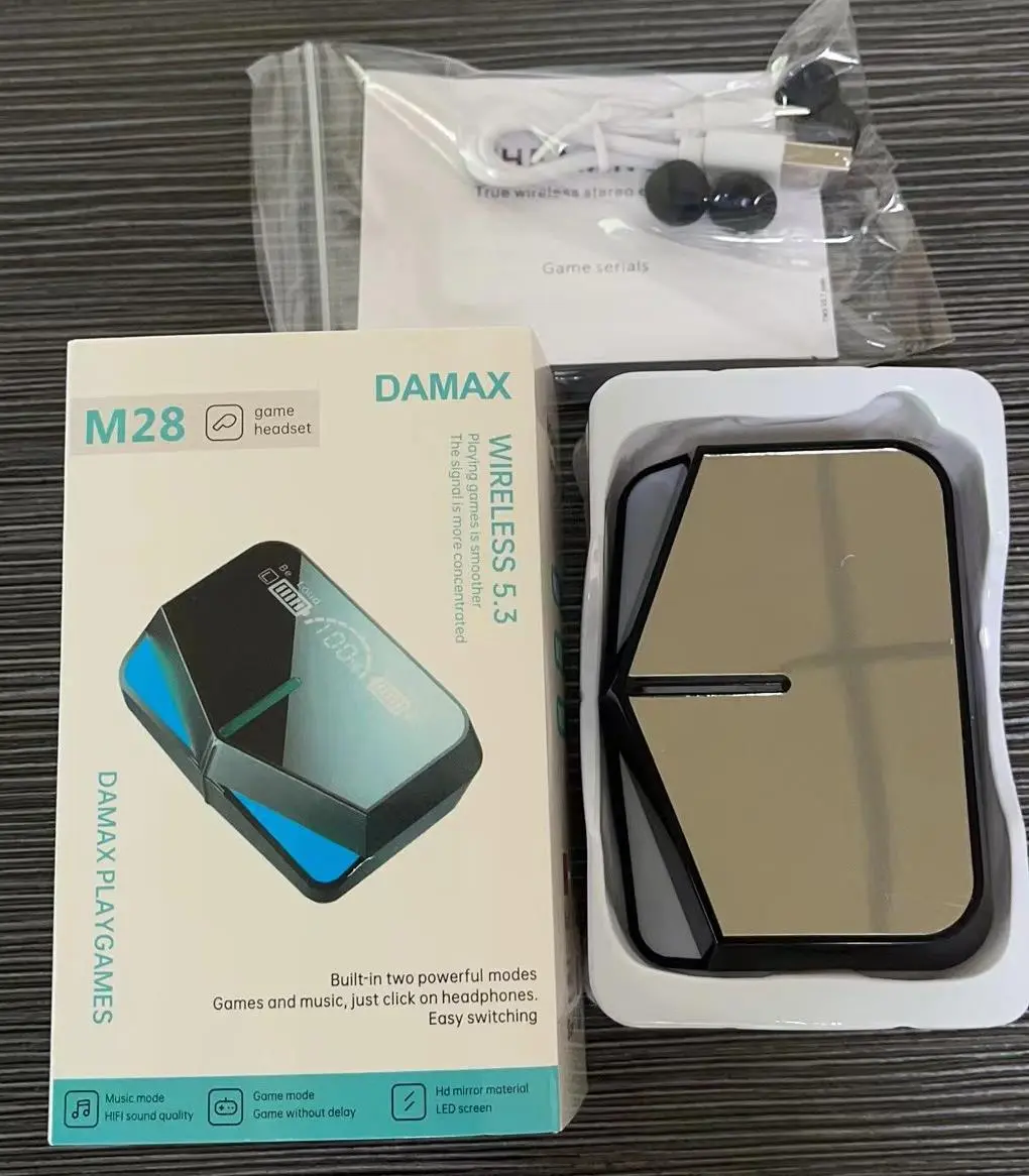 Designed with durability in mind, the TWS-M28 features an extended battery life that supports hours of continuous gaming on a single charge. It comes with a compact charging case that provides additional power, so you can game on the go without interruptions. The intuitive touch controls allow you to manage calls, adjust volume, and access your voice assistant with ease. This headset combines convenience, quality, and style, making it an essential accessory for dedicated gamers looking for reliable, high-performance audio.