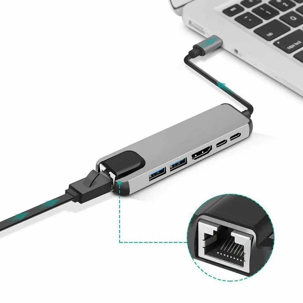 Type C To HDMI+USB3.0+PD 6 In 1 HUB Hub Rj45 Network Card Adapter