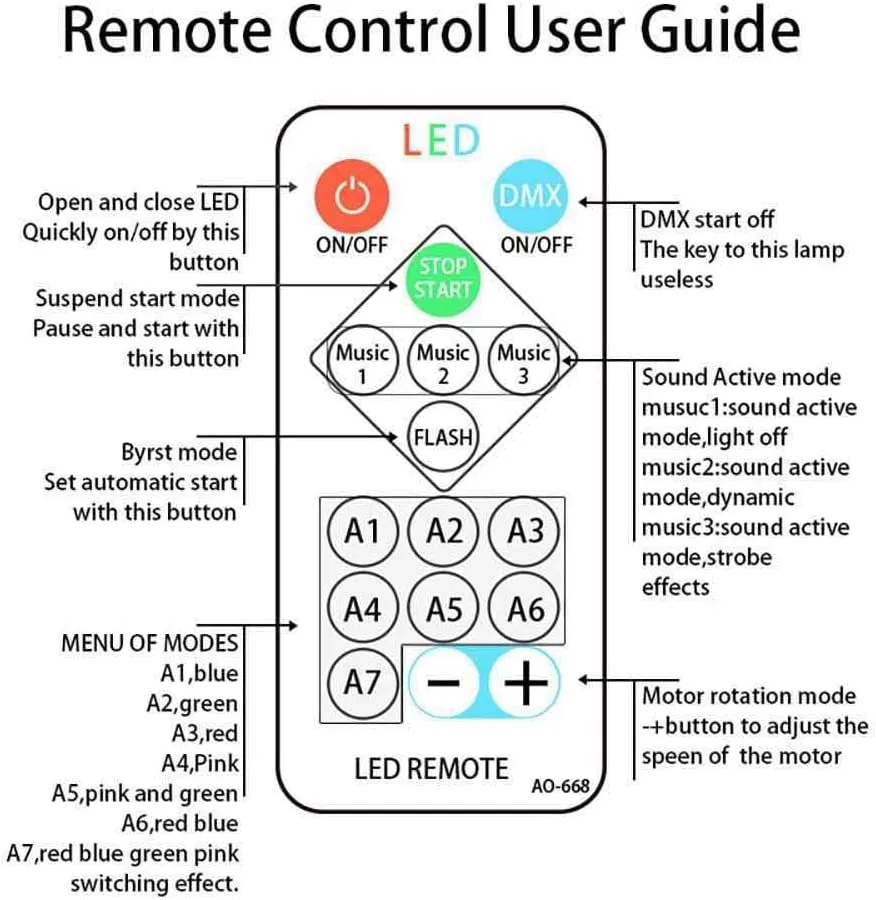 10. Beam angle: 120 degrees 11. Remote control distance: 3-5 meters