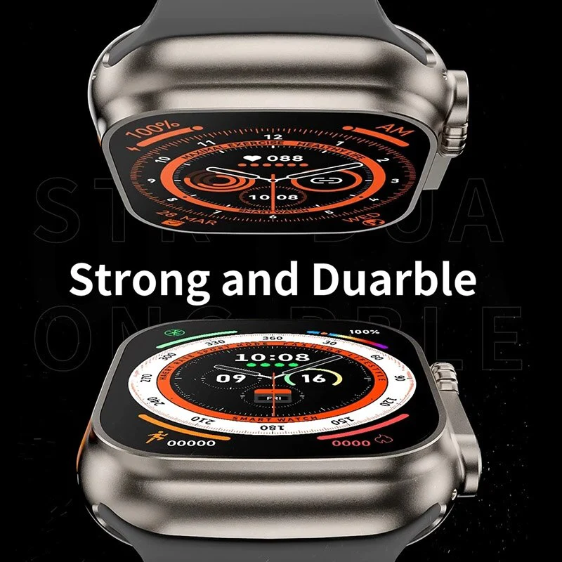Ultra Watch 49mm: Larger, brighter display showcasing detailed health metrics and dials.