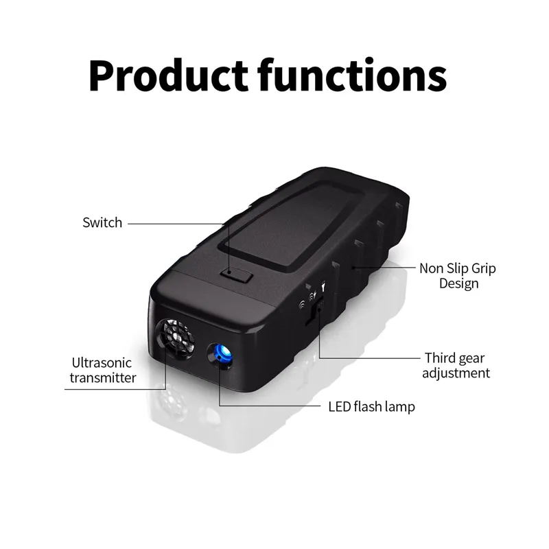 3 modes & LED Flashlight : 1nd gear ultrasonic mode to assist in daily dog training such as stop excessive barking, fighting, biting, and correct other unwanted behaviors, 2nd gear ultrasonic LED mode will not only emit an ultrasonic sound, but it will also quickly LED flash the bright LEDs and stop a dogs’ behavior. 3nd gear the bright flashlight can also be turned on and used to light your way home.